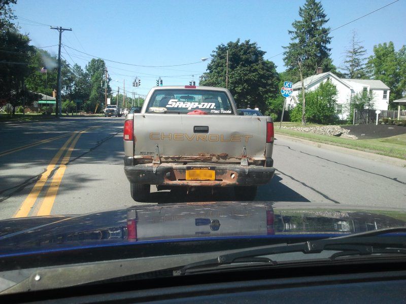 Saw this on my way home from work one day and had to snap a picture. If your tailgate hinges break, just go to the local hardware store! I’m guessing by the Snap-on and Mac Tools stickers on the window that he’s spent all his money on tools and not his truck.