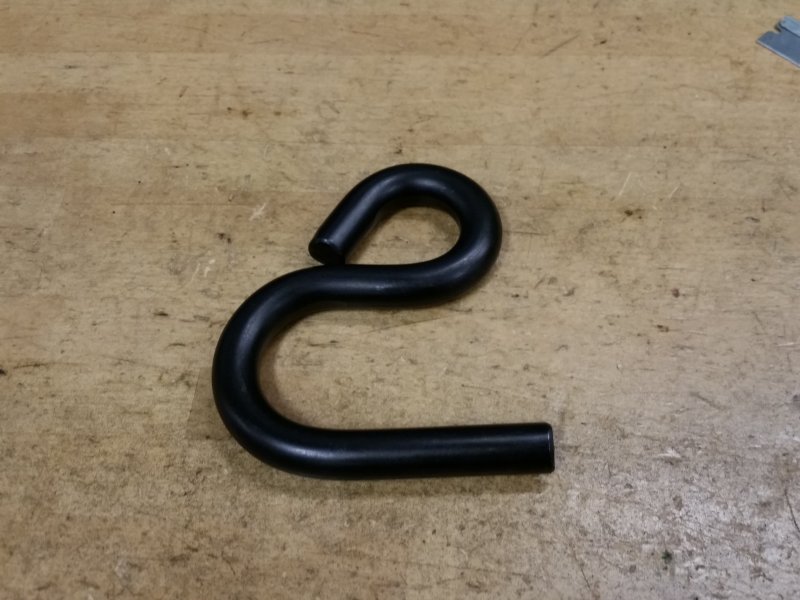 The big opening slides over the control arm, and your prybar slides through the small hole. It works with standard large prybars, and if you wanted to use a smaller one you could, but a bigger one makes the job easier. The tool is made out of a single piece of bent steel rod, and it has a coating on it to prevent rust. It’s very solid and I don’t think it’ll ever fail with the amount of force I can put on it.