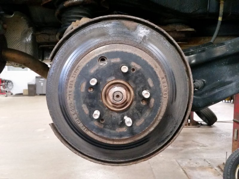 The rust ridge on the inside edge of this rotor had built up so much it was actually grinding against the caliper bracket. Not bad enough to really damage it, but a good idea to change the rotors.