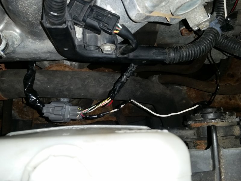 Somebody had previously attempted to fix the lack of signal from the knock sensor by just splicing in their own wire. After their first attempt failed, they spliced another wire into that one and ran it all the way across the cowl and into the car, where they spliced into the wiring harness near the PCM. I don’t know if one of their splice connections is bad or if there’s a break somewhere else in the wire, or if they even connected to the right wire inside the car, but the only way to really be sure to fix this would be to replace the wiring harnesses.