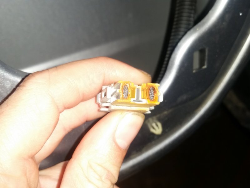 I was having trouble unplugging the first speaker, ending up trying a couple different tools before it finally came free, and more than just the connector came out. It pulled the pins right out of the speaker as well because it had all corroded together. I didn’t bother trying to unplug the other two speakers when they wouldn’t immediately come apart because it was clear that they were corroded too.