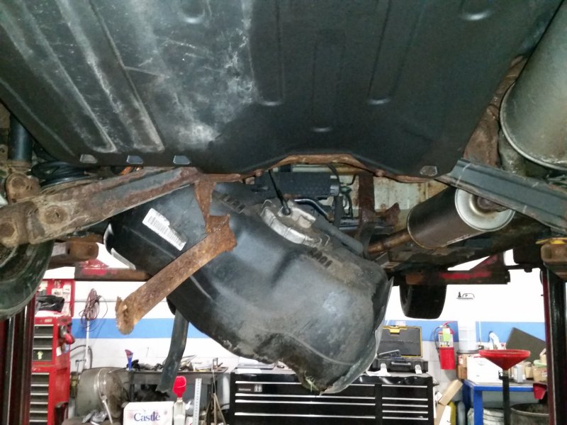 Luckily, nothing broke besides the straps. The fuel lines stayed attached, even though the hoses got stretched pretty tight, and the fuel pump electrical connector actually unplugged, rather than pulling out the wires. The lack of the fuel pump running was the only reason the car wasn’t running. New gas tank straps and hardware, and the car was on its way.