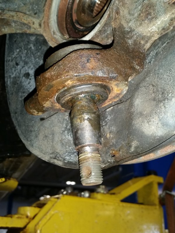 One of the first steps in the recall is separating the lower control arm from the steering knuckle at the ball joint. As usual, my ball joint separator tool made quick work of popping them free, but when I started moving things around to get the axle out, other problems became apparent.
