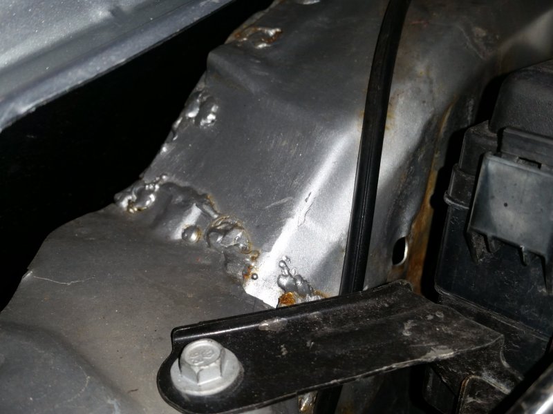 The welds are ugly and lumpy, which they then tried to hide by grinding them down, and in some spots you can see bits of filler wire from not having the welding gun positioned well. There are also a lot of rust spots in the areas that they welded, which shows that their paint job wasn’t very good either.