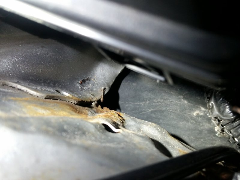 Besides the bad repair, there was also this spot where the wrinkles in the original metal were still there, when this area probably should’ve been replaced too. I had one of our body shop guys take a look at it, and he said that while it is poor quality work, it’s not unsafe.
