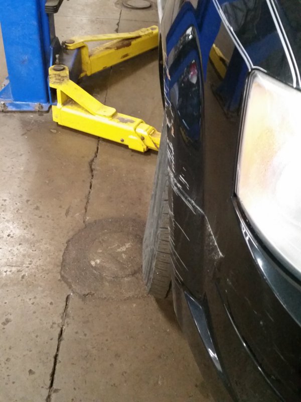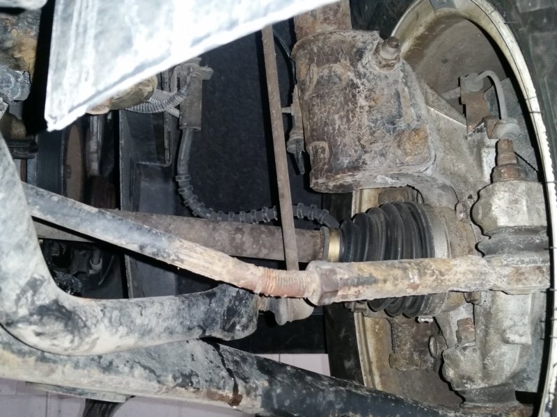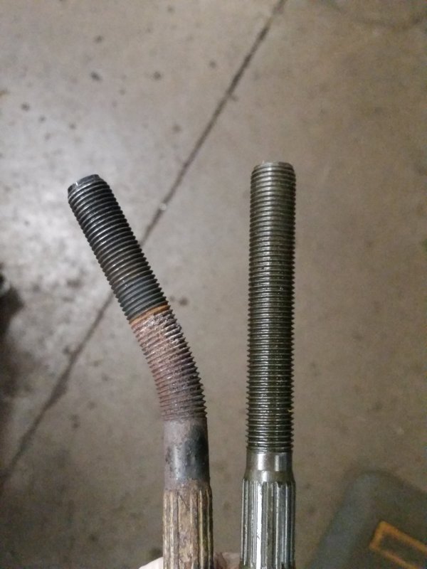 The customer said they had a flat tire and now the wheel is really crooked. They probably hit a curb or pothole pretty hard, cause the right front tie rod was very bent.