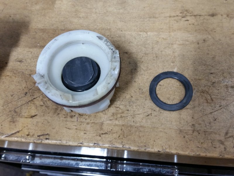 There is an outer flap and then an inner flap that actually seals the filler neck. Somehow, the seal on that inner flap had come off, and then come out of the assembly altogether. I’m not sure how that happened, but if it hadn’t, I would’ve had to spend a lot more time trying to find where the system was leaking.