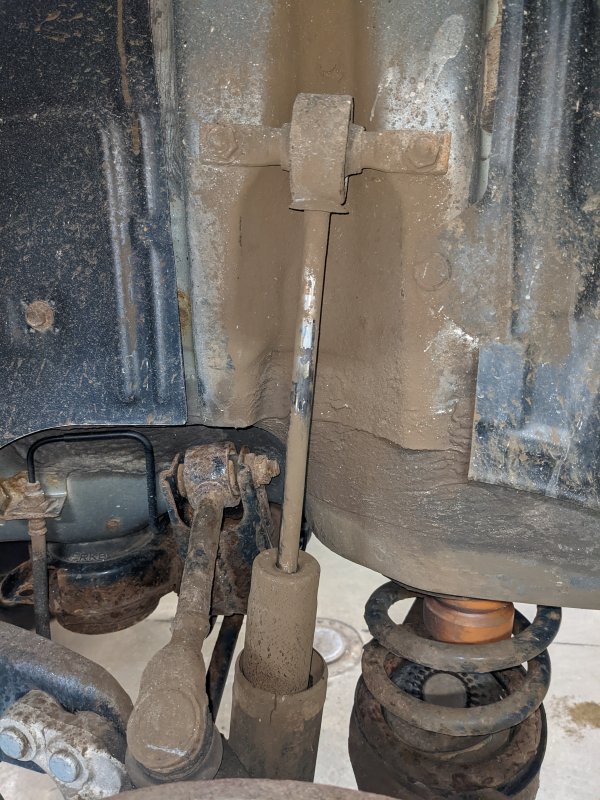 Besides the engine air filter that had clearly not been changed in many tens of thousands of miles, one of the rear shock absorbers was in the worst shape I’ve seen one. Usually when a shock absorber goes bad it’s leaking oil out from the inside. I don’t know if this had any oil left in it or not but it there was rust all around the area where the piston works, and the plastic cover had fallen down the cylinder, leaving the shaft completely exposed.