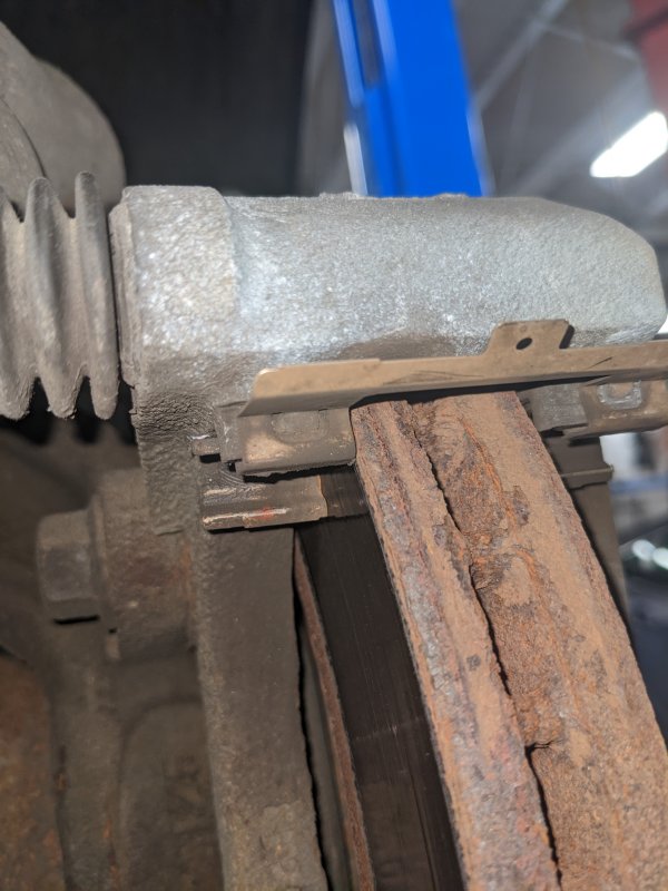 I’ve seen this a couple times where the pad holder hardware gets shifted over in the caliper bracket to where it is now rubbing against the brake rotor and causing noise when the car is driven. I suspect that this most often happens when the pads are rusty and stuck in the holders and take some force to remove, and they move the hardware as they come out. If you’re replacing the pads you should also be replacing these, but if you’re just removing the pads to clean and relubricate them, that’s when I think this is most likely to happen.