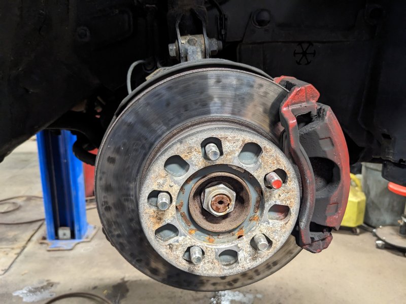 That’s when I found that the car owner had used wheel spacers on the front hubs to make the wheels not rub against the suspension. The problem with this is that the wheel studs were stock. With the extra thickness of the spacer, there’s less contact area for the lug nuts to engage the studs.