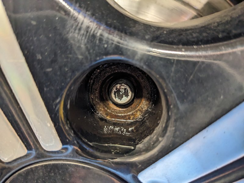 There was so little stud left for the lug nuts due to the spacers that I couldn’t go even two full turns by hand before the lug nuts were snug to the wheels. That means that there’s barely anything holding the wheels on. It should be obvious why that’s unsafe. I made sure to document on the repair order, both the physical copy and on the computer, that the car was not safe with the wheel spacers.