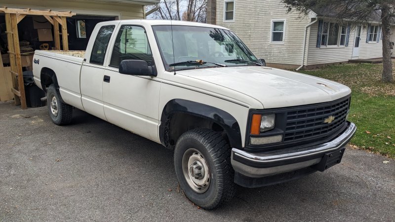 The Story: My F-250 was still running, but was getting more and more rusty, and I was never confident in the engine starter system, so I decided it was time for a new truck. I had wanted another F-250 or F-350, but extended cab, diesel engine, automatic transmission, but I didn’t have any luck finding one, so I ended up finding those specs in a 1993 Chevy. I drove an hour into the middle of nowhere to buy it, stopped to fill the tank, and broke a starter bolt and had to have it towed home.